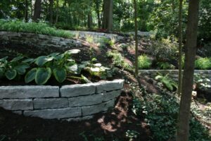 Small retaining walls and flagstone walkways from exquisite designs, with functionality as the forethought.